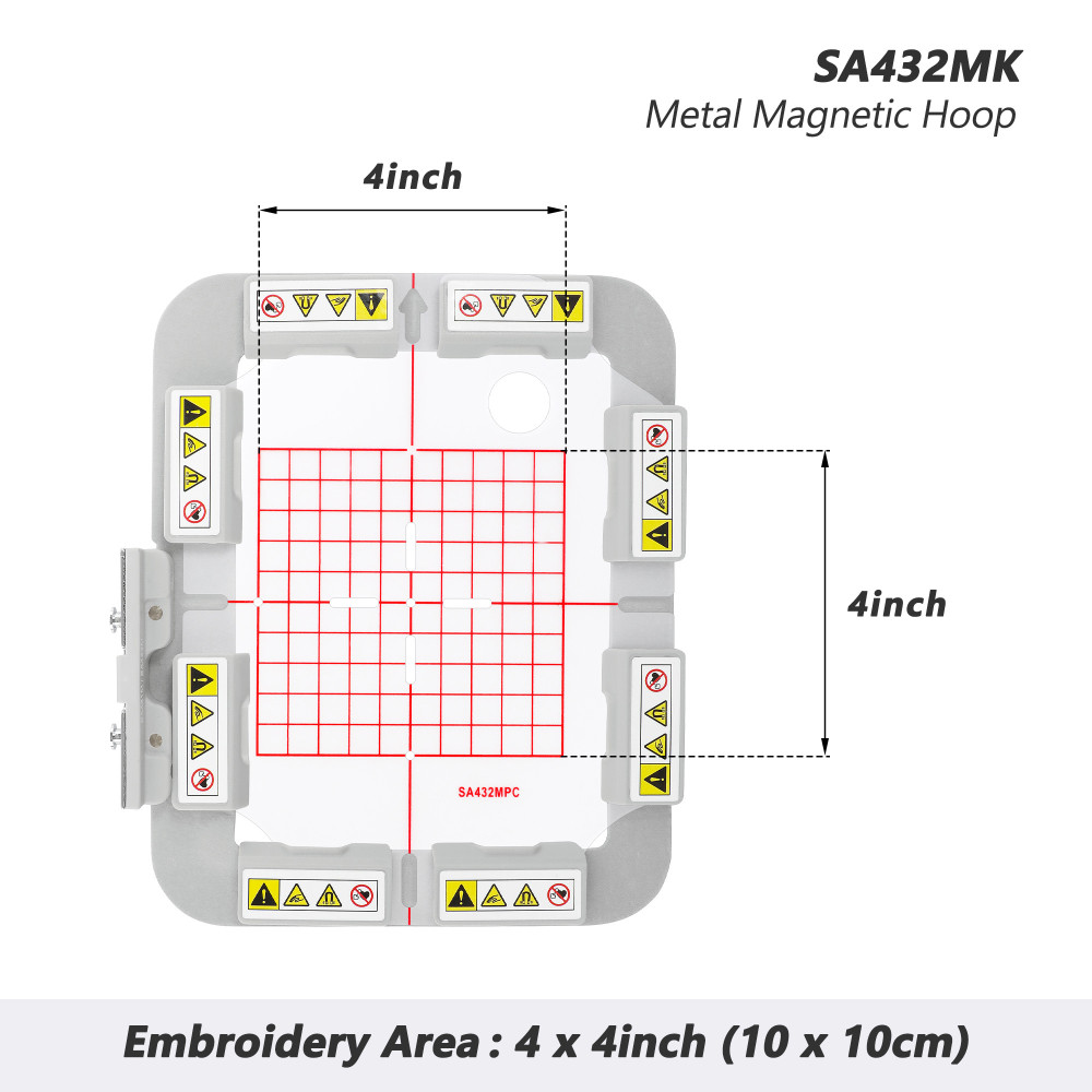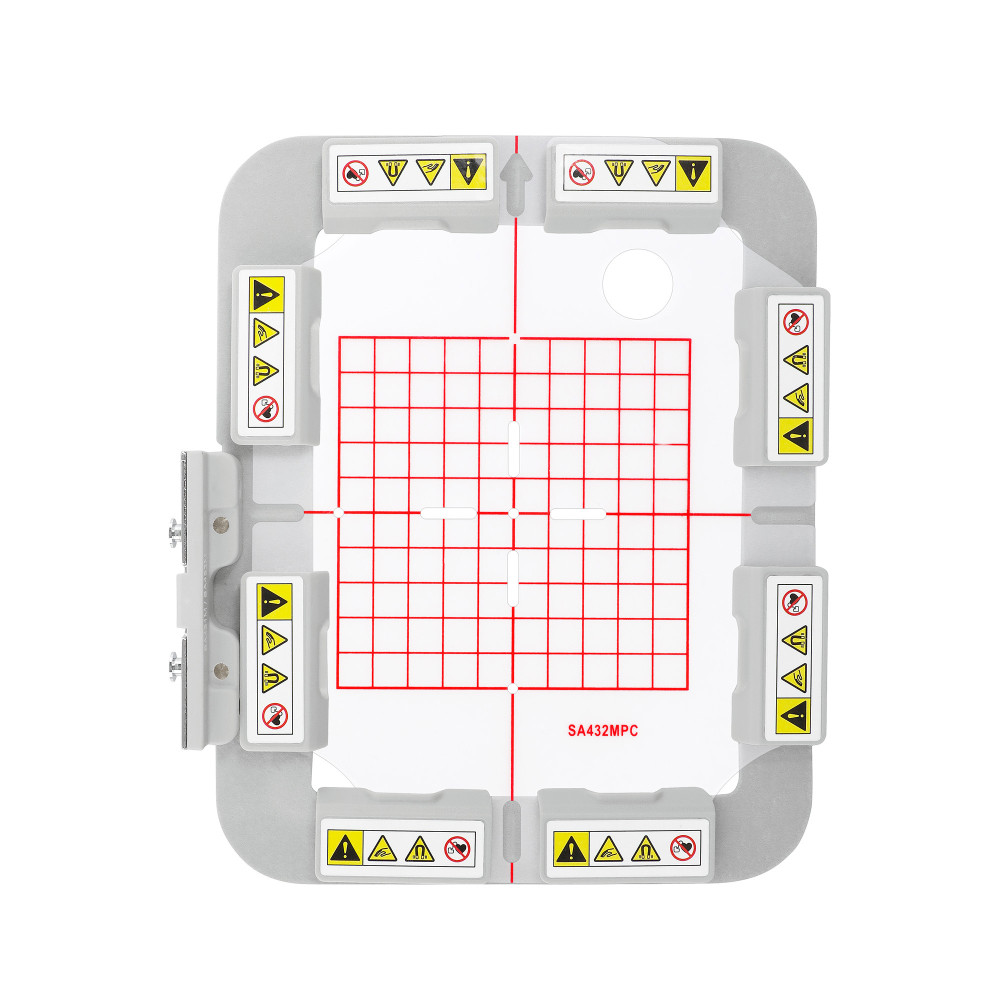 *Hinweis: Verschiedene Stickmaschinen haben unterscheidliche Mittelpositionen, sodass die erhabene Markierungen auf dem Stickrahmen und die mitgelieferte Rastervorlage möglicherweise nicht perfekt mit der Mittelposition Deiner Maschine übereinstimmen und nur als allgemeine Referenz verwendet werden sollten.