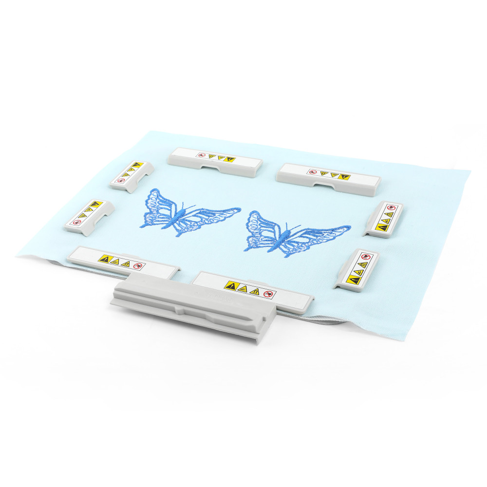 - Schnelles Umpositionieren: Ideal für serielle Stickmotive oder einlose Stickereien - Magnete abnehmen, Stoff verschieben, weitermachen!